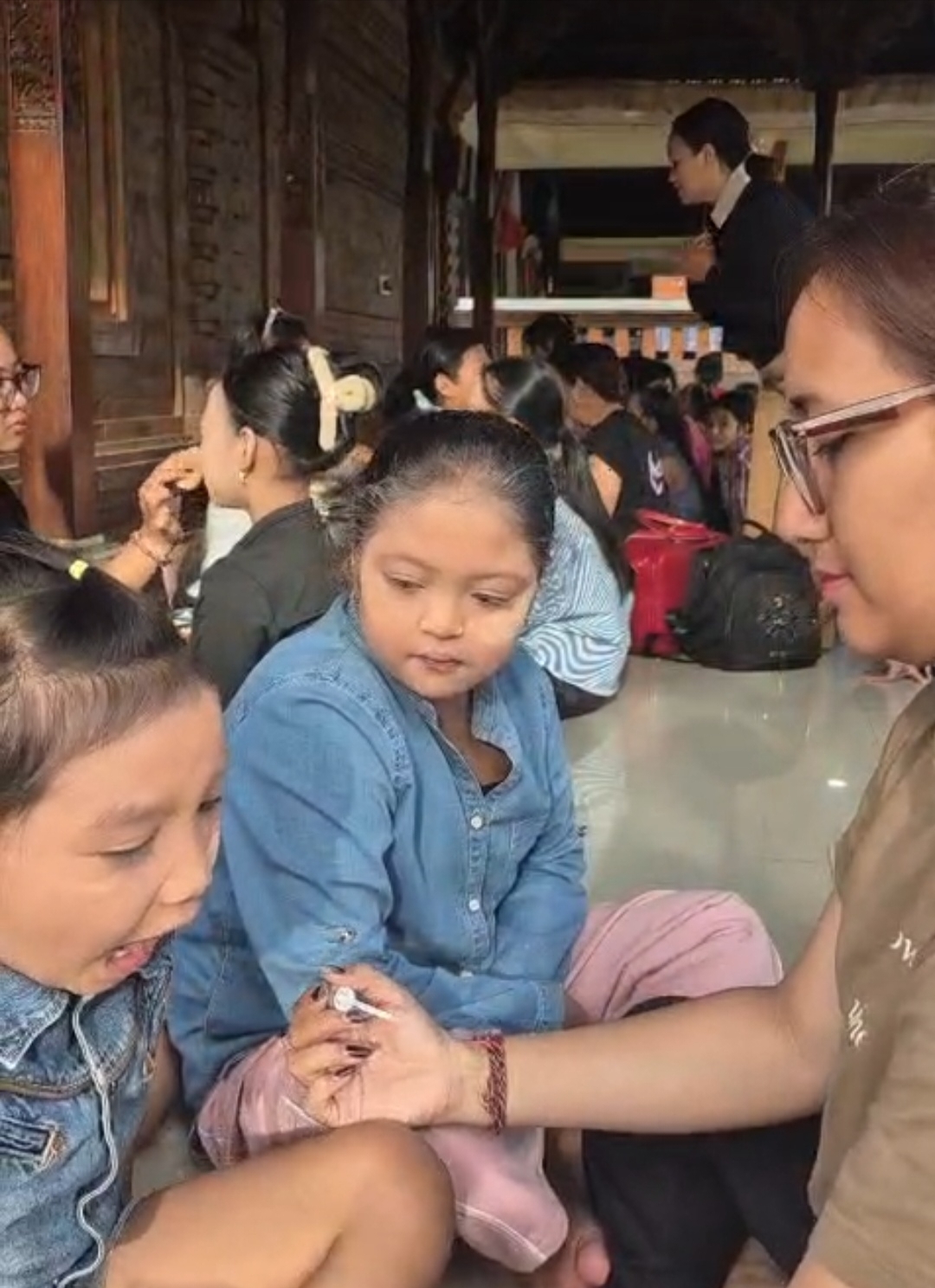Since early morning, the temple courtyard was filled with parents accompanying their children. Rows of motorcycles lined the parking area, helmets hanging from mirrors, costume bags carried modestly by hand. There were no convoys of luxury cars. Yet within that simplicity stood a powerful commitment to keeping Balinese tradition alive.